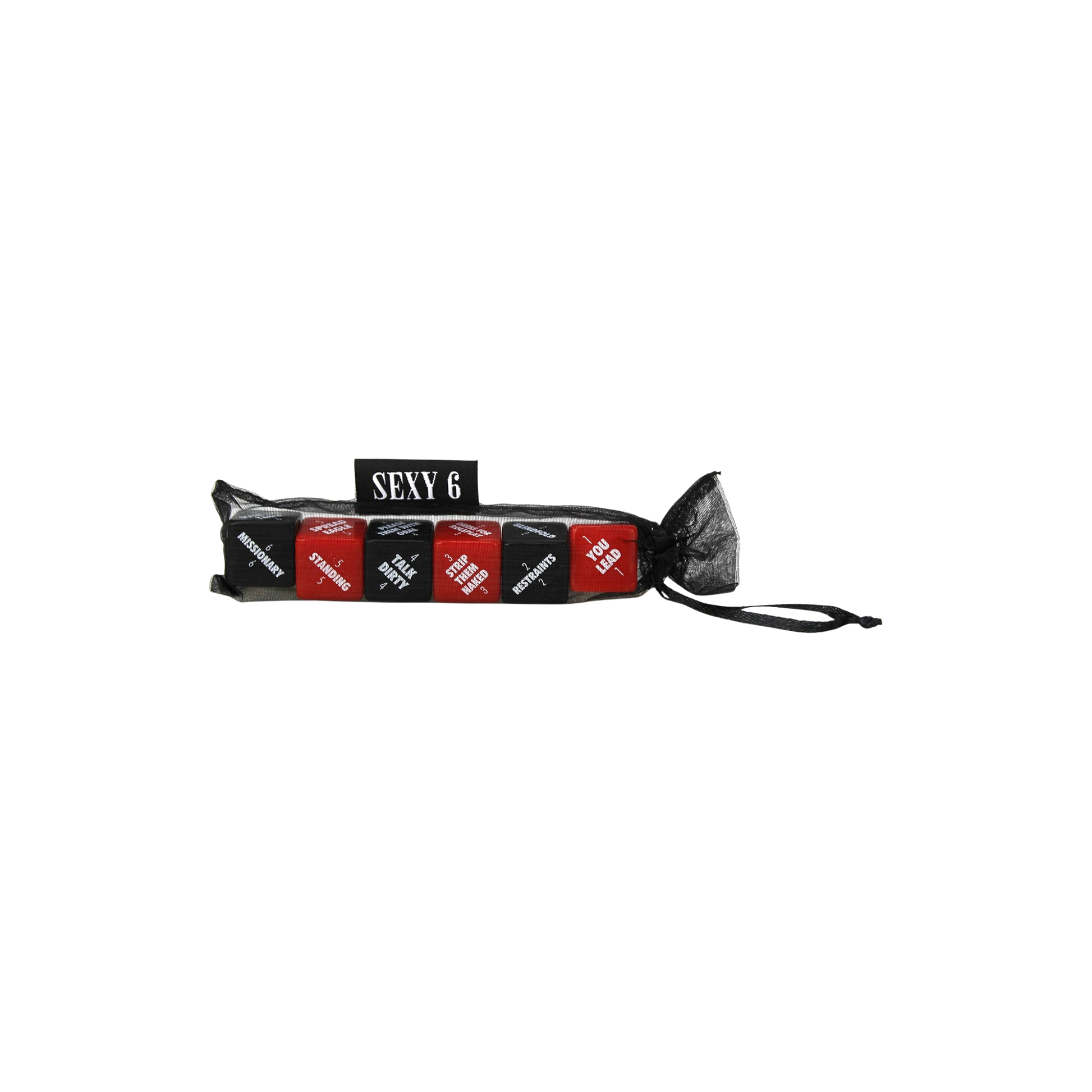 Roll with raunchiness for impromptu flirty fun! Get down and get dirty with sexy 6! Toss the dice to add a little spice and surprise to your bedroom antics, with 720 possible combinations for you to enjoy.