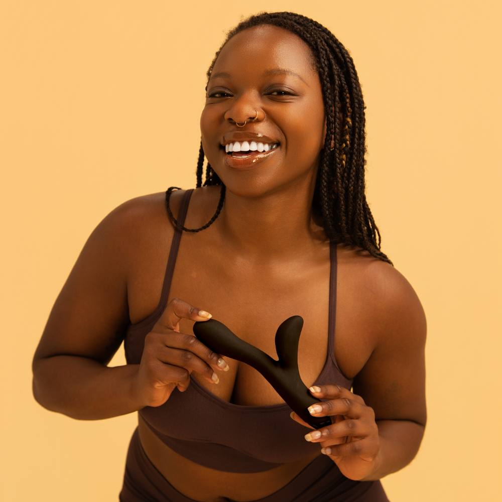 Start by using hera flex externally with a bit of water-based lube—massage your clitoris with the spongy “ears,” then use the G-spot arm to tease around the vaginal opening until you’re ready to slip it inside. Once inserted, you can push as much or as little pressure as you like against your G-spot while the external arm keeps buzzing along. With deep, rumbly vibration, flexible body, and multiple speeds and patterns, hera flex is designed to help you explore different positions, sensations, and moods—whether you want clitoral, G-spot, or both at once.