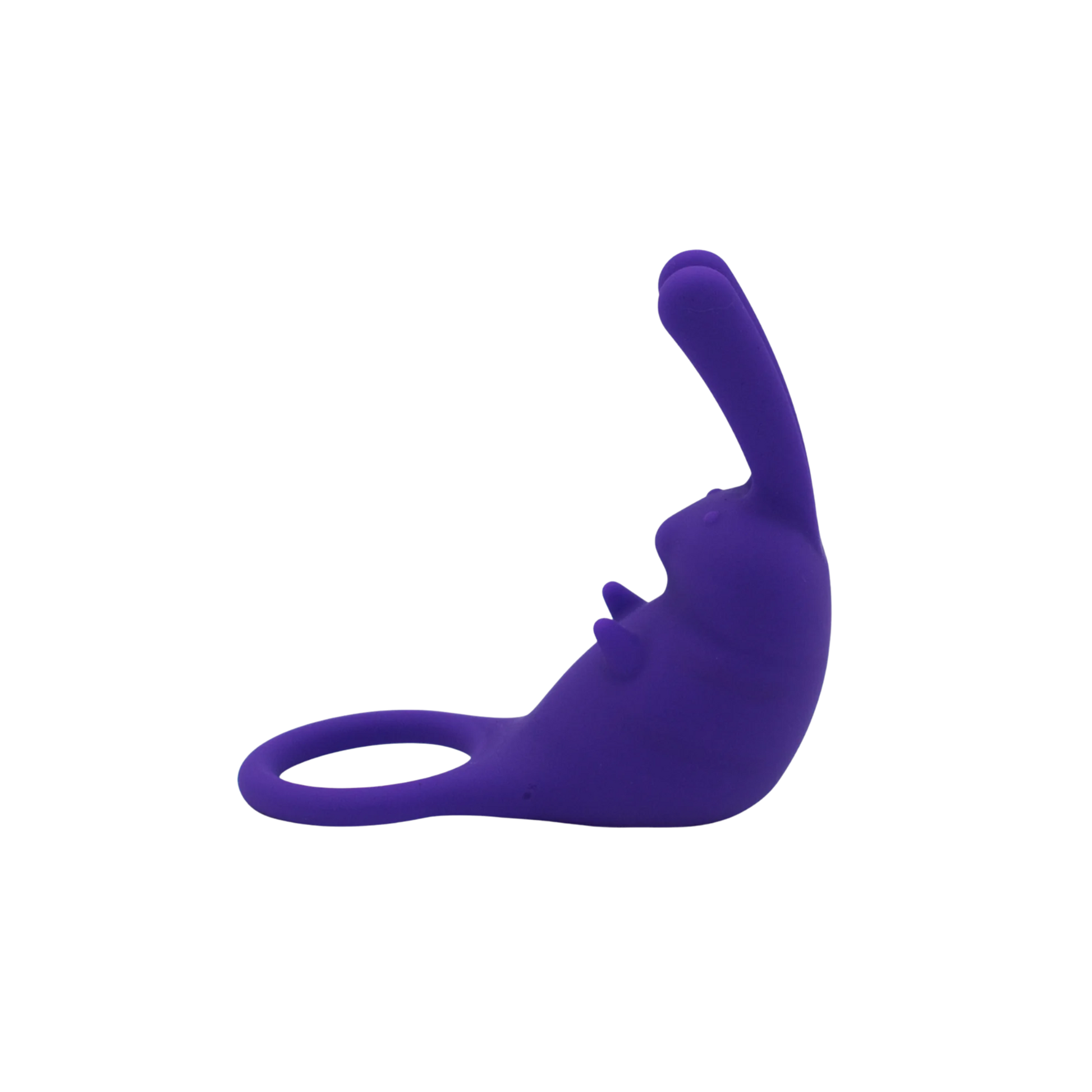 The Cock Hopper will make you wiggle and twitch in pleasure! You will be binkying like a bunny! So, hop on in and see what the excitement is all about! The Cock Hopper is a cock ring and rabbit bullet vibrator. Targeted for external stimulation, this toy can be used for penis & scrotum stimulation or penis & clitoral stimulation. The Cock Hopper can also be used as a standard bullet anywhere on the body with the twin tip rabbit ears, as a grinding toy or a palm toy for anyone with grip issues. Place The Cock Hopper on the base of a dildo or vibrator for heightened sensations. The limits truly are endless with this multi-function toy! Directions: For penis & scrotum play, attach the ring around the base of the penis with the rabbit upside down. For penis & clitoral play, place the ring around the base of the penis with the rabbit facing up. For palm play, stick two fingers in the ring or cup the entire toy in palm. For dildo play, place on the base of dildo or vibrator at desired height.