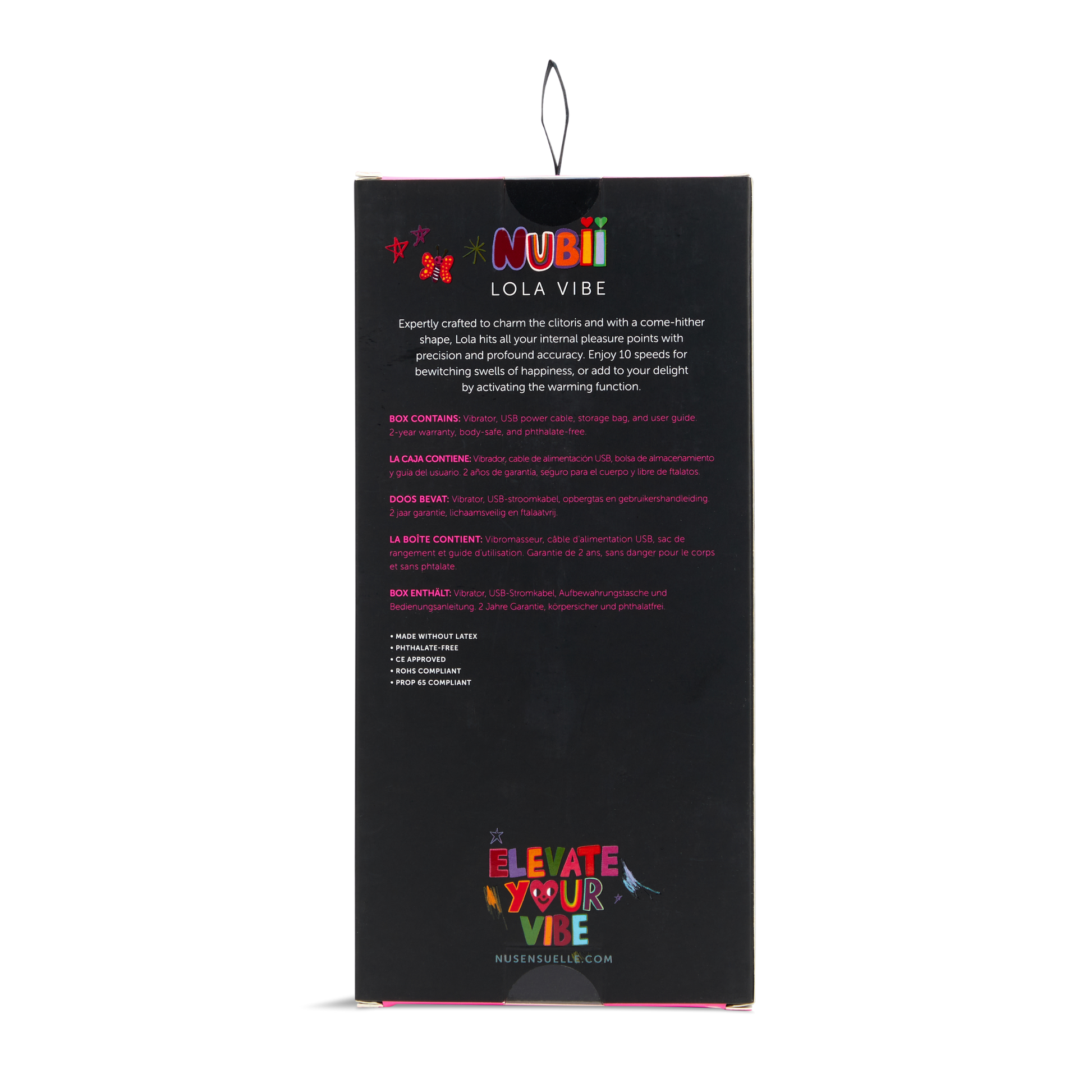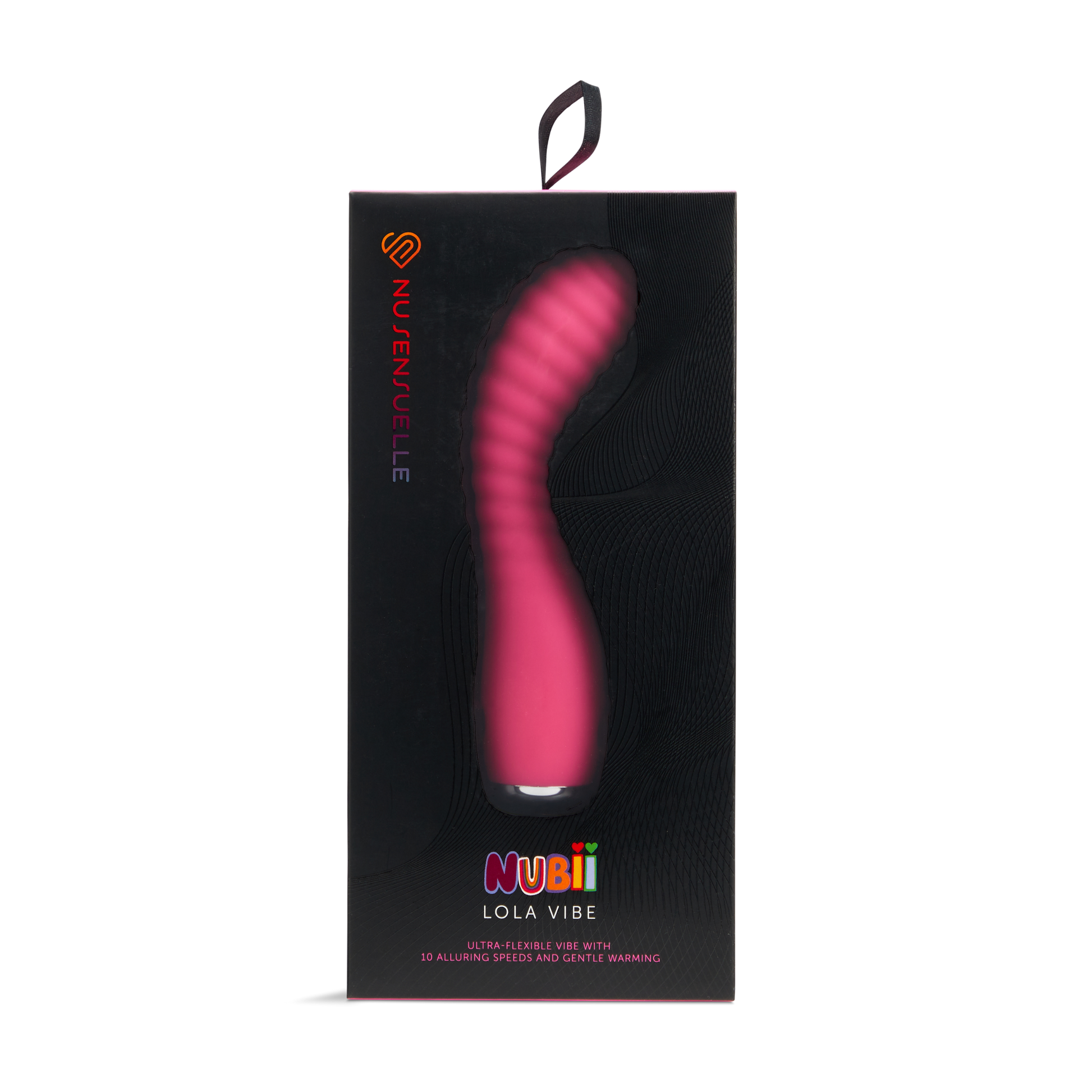 Meet Nubii Lola from Nu Sensuelle, expertly crafted to charm the clitoris and with a come-hither shape, this flexible vibrator hits all your internal pleasure points with precision and profound accuracy. Powered by the Nubii motor, Lola’s ten speeds bullet vibrator deliver buzzy and subtle gyration pulsations. The flexible shaft, delicate ribbing, and warming function of this vaginal & G-Spot vibrator tempt your senses further for an extraordinary experience providing unforgettable orgasms.