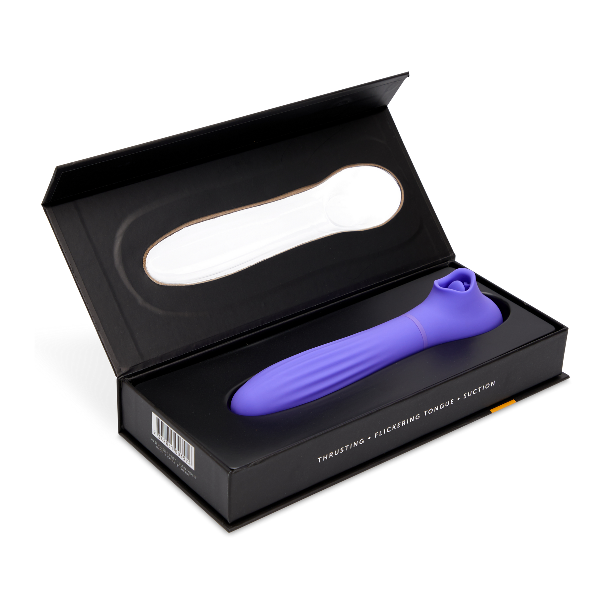 Enjoy multiple titillating sensations with the satisfying Daisy. We took our wildly popular Trinitii and bumped up the erotic potential with the addition of thrusting to simulate a realistic and satisfying sensation. With three speeds and seven modes, the imaginative thrusting component replicates the natural movements of a partner. Daisy also offers seven gentle suction speeds and five flickering tongue modes that can be layered to simulate oral play. The spirited multi-play functionality of suction, flickering tongue, and thrusting delivers the orgasm you deserve.