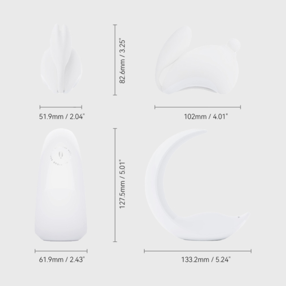 When not in play, Bunnymoon transforms into an ambient nightlight with touch-sensitive brightness control. Its discreet design and magnetic charging base make it a seamless addition to your nightstand—nobody has to know it’s your favorite toy.
