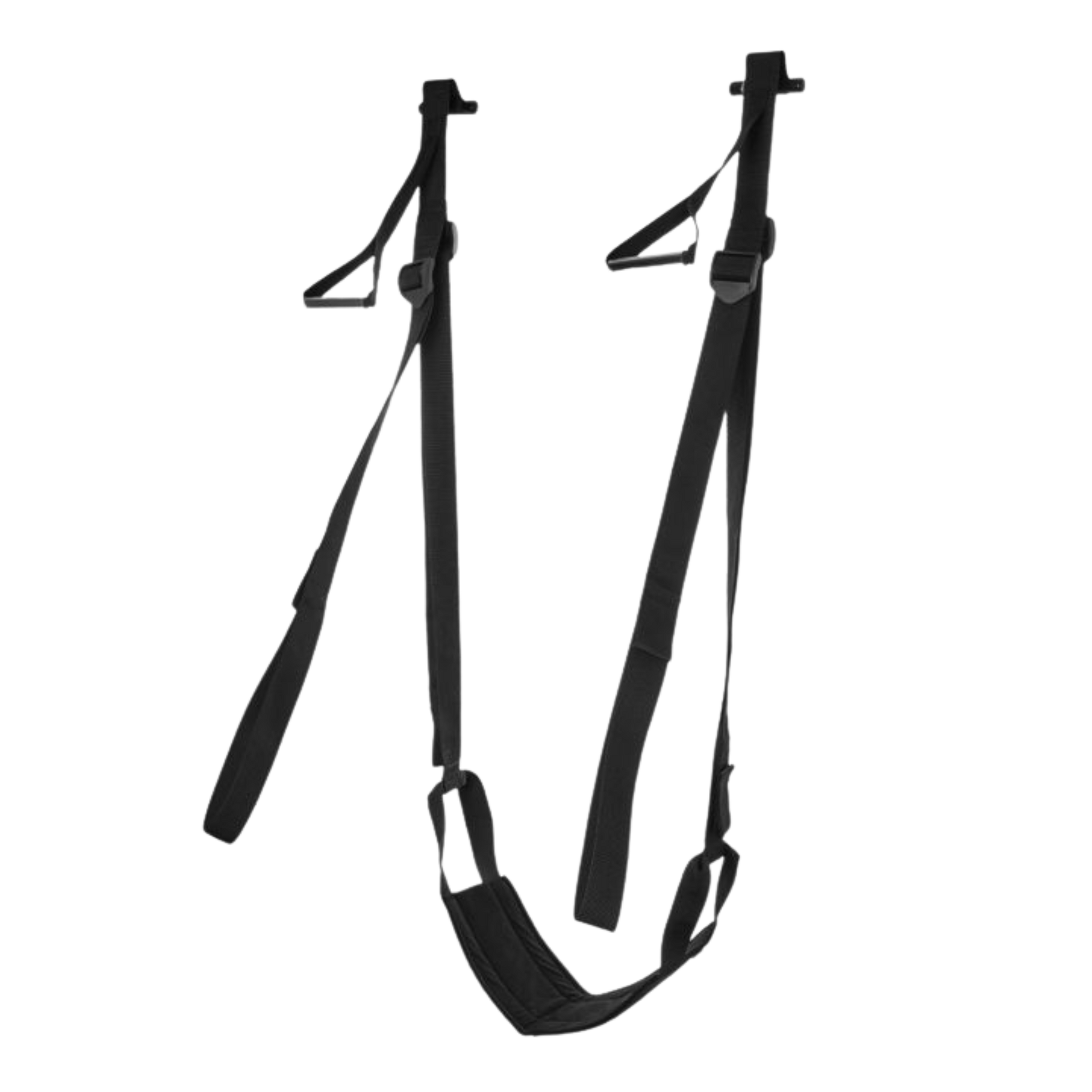 Strong, durable, and highly adjustable for your most creative sexual endeavors! With the Door Jam Sex Sling, Sportsheets has designed a solution that empowers couples to experiment with exciting new positions without worries about stamina, awkwardness, or injuries. Just secure the sling over your door by closing it on the dowels and adjust each of the straps to the perfect lengths for your bodies and chosen position. The footrests, hand straps, and a padded seat ensure comfort during your most vigorous carnal explorations. When you're both satisfied, this sling is easy to take down and store away for next time!