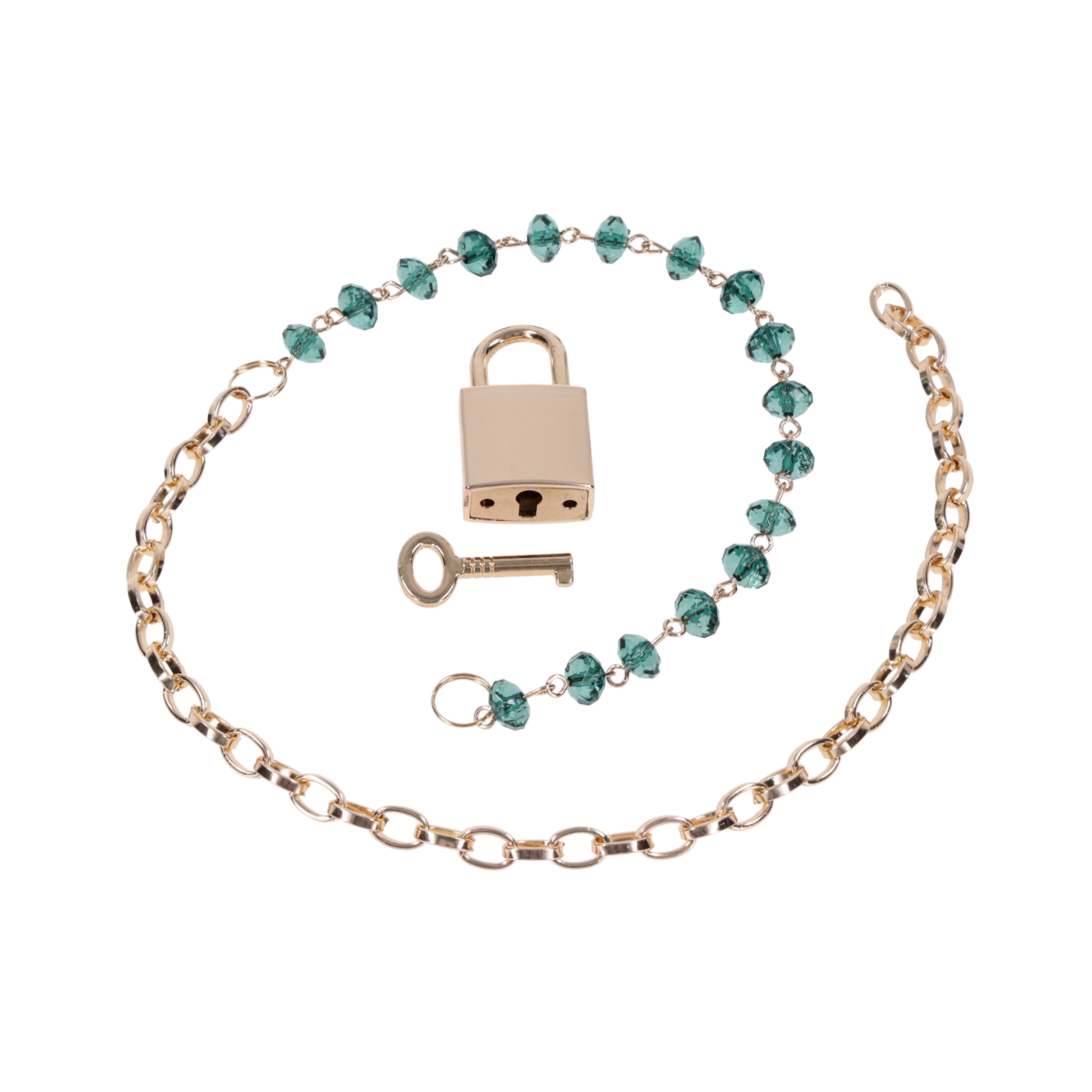 - Green gem details and gold chain for luxurious everyday wear