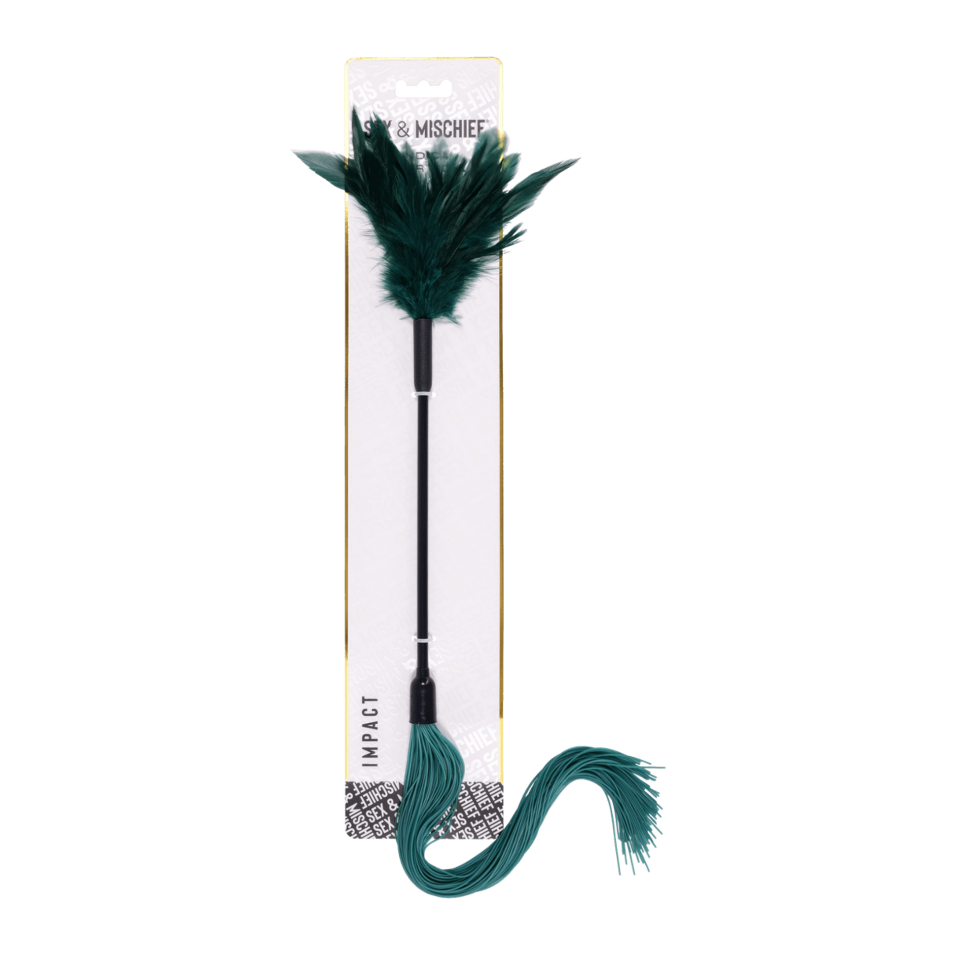 Explore the art of contrast. The Indica Feather Tickler is a dual-ended tool that teases and tantalizes with every stroke. One side features soft green feathers for delicate sensory play, while the other delivers a light sting with flexible silicone falls. Use it to awaken nerve endings, set the mood, or surprise your partner with an unexpected switch in sensation. It's a two-in-one treat designed for touch you won't forget.