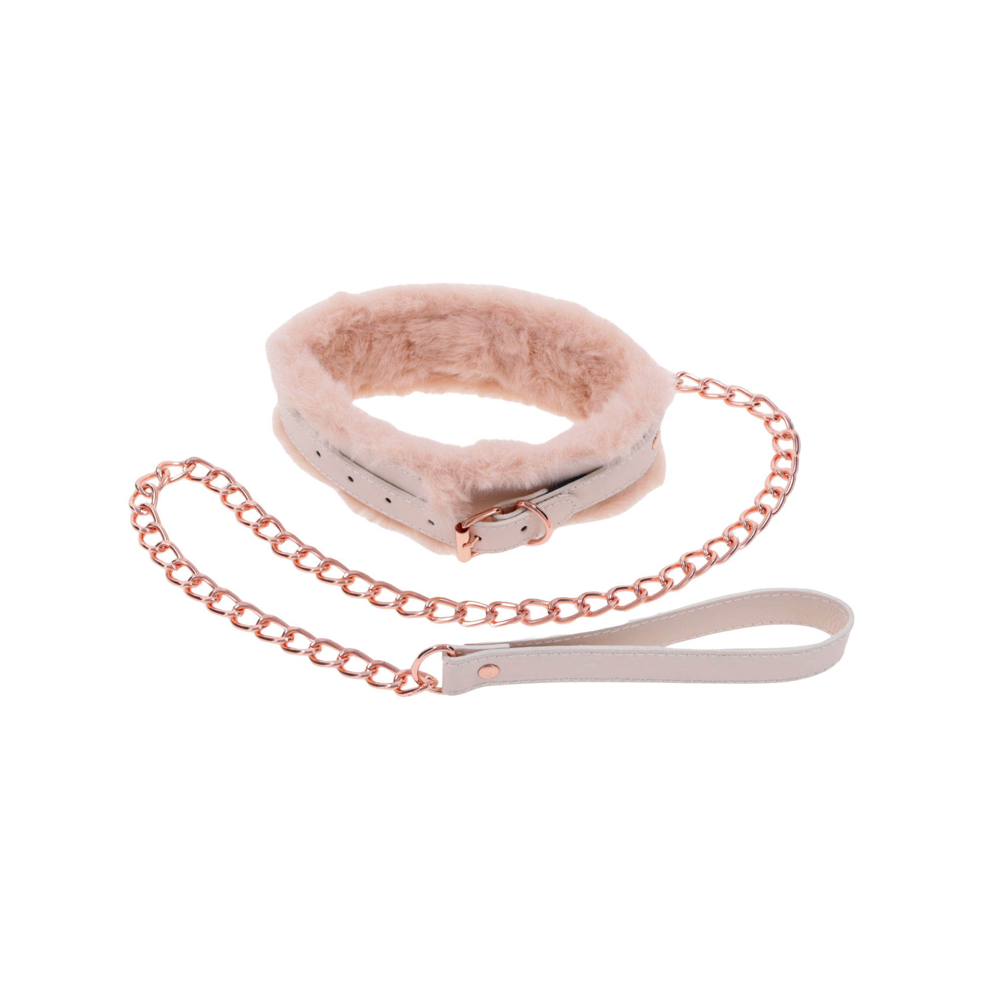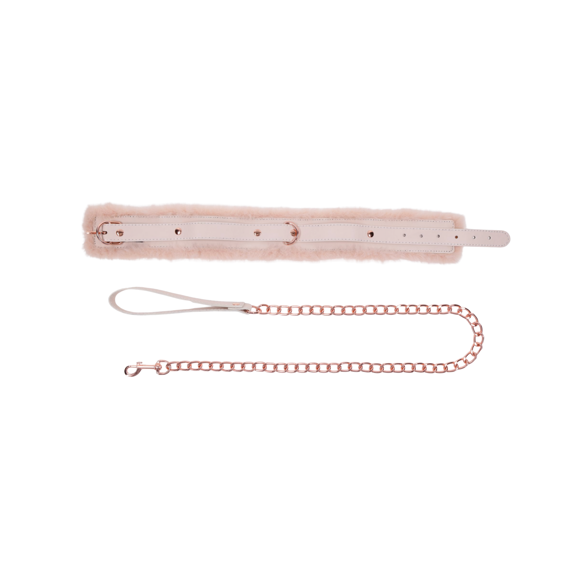 Unleash your inner flirt and take your playtime to a whole new level with a luscious peach-colored faux fur-lined collar and matching leash. The soft, luxurious feel against your skin is like a sweet embrace, while the rose gold hardware adds a touch of sophistication to your wildest adventures. Secure and adjustable, this collar ensures a perfect fit for every peachy partner, while the detachable leash lets you take charge of the tantalizing journey. Whether its for a playful peek into power play or a silly new way to find pleasure, the Peaches ‘n CreaMe Collar & Leash is the perfect accessory to add a dash of charm and a pinch of spice to your intimate moments.