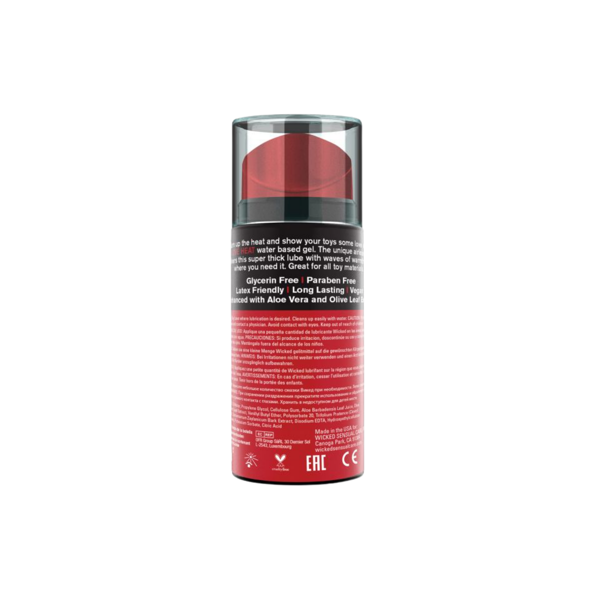 Ignite your intimate moments with Wicked Toy Love Heat, a warming water-based lubricant crafted specifically for toy enthusiasts. This luxuriously thick formula features nourishing Aloe and Olive Leaf Extract to keep things comfortable while you play. Its signature jelly-like consistency clings exactly where you want it—no messy slipping or sliding. Experience silky-smooth glide enhanced by a tantalizing warmth that builds the heat and intensifies sensation across all toy types and materials. Perfect for those who crave that extra spark.